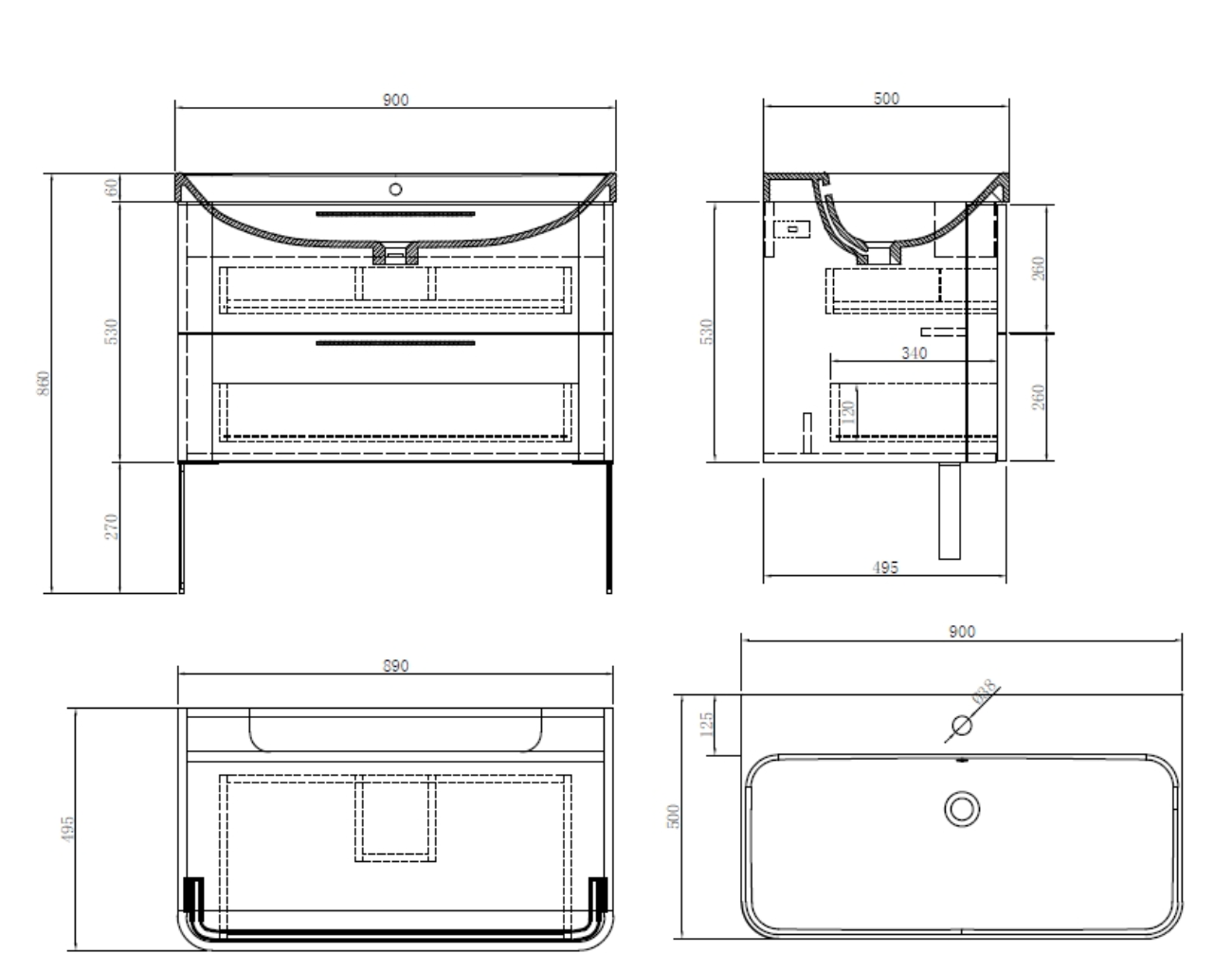 珂珑900mm浴室柜组合(绅士灰) (单孔) = BC5501-001GY + BC5504-101