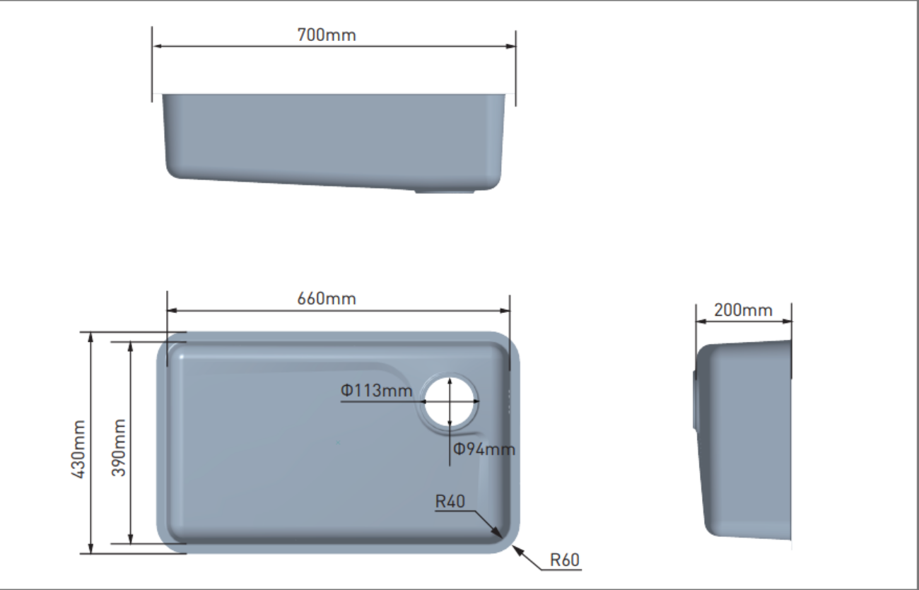 662 x 392 x R41mm