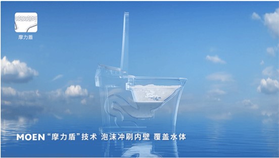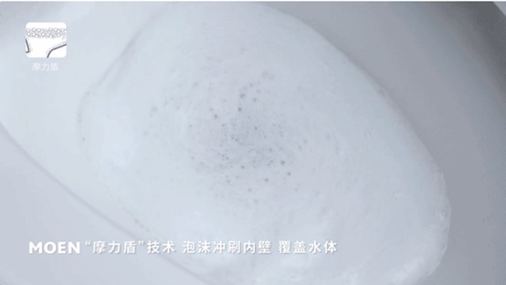 「摩力盾」释放的泡沫,具有强大的润滑功能,悄悄附着于马桶壁,能够防止污垢安家,如厕后随水流轻松冲走,卫生省心。